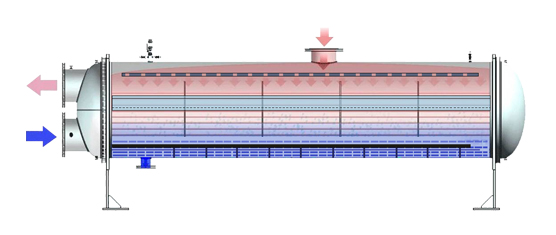 運用行業(yè)領先的高效冷凝傳熱管,優(yōu)化冷凝器結(jié)構(gòu)布置,換熱性能更優(yōu)。在底部設有多重擾流的逆流過冷室,提高過冷度。